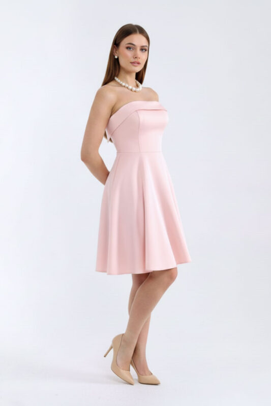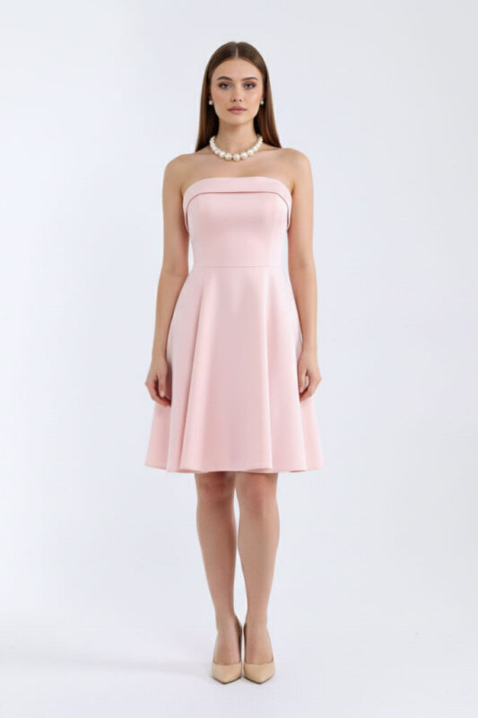 Къса сатенена рокля тип корсет в светлосиньо „Sky Bella“
