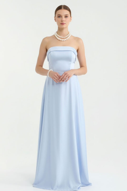 Небесно синя рокля тип бандо „Sky Stella“