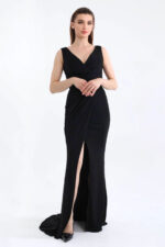 Черна вечерна рокля с ефектна цепка „Black Venus“
