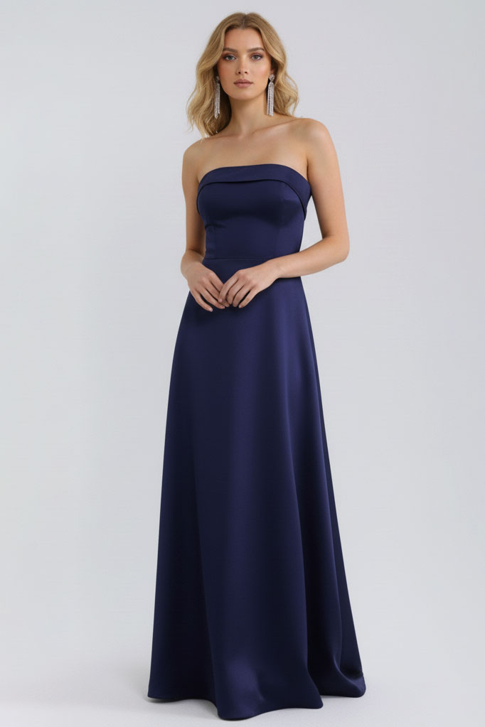 Тъмносиня официална рокля от сатен „Navy Muse“
