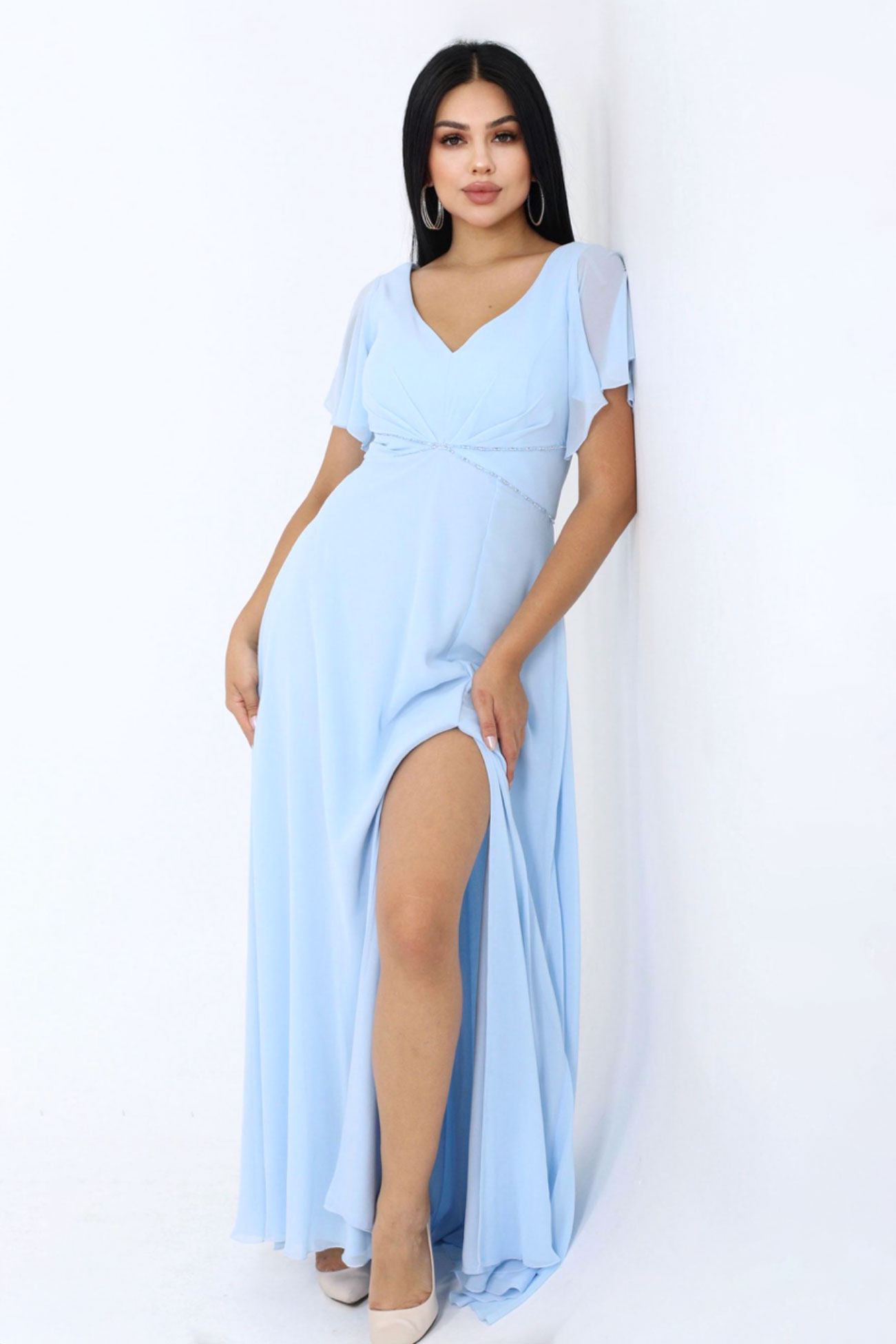 Небесно синя шифонена рокля с камъни „Sky Crystal“