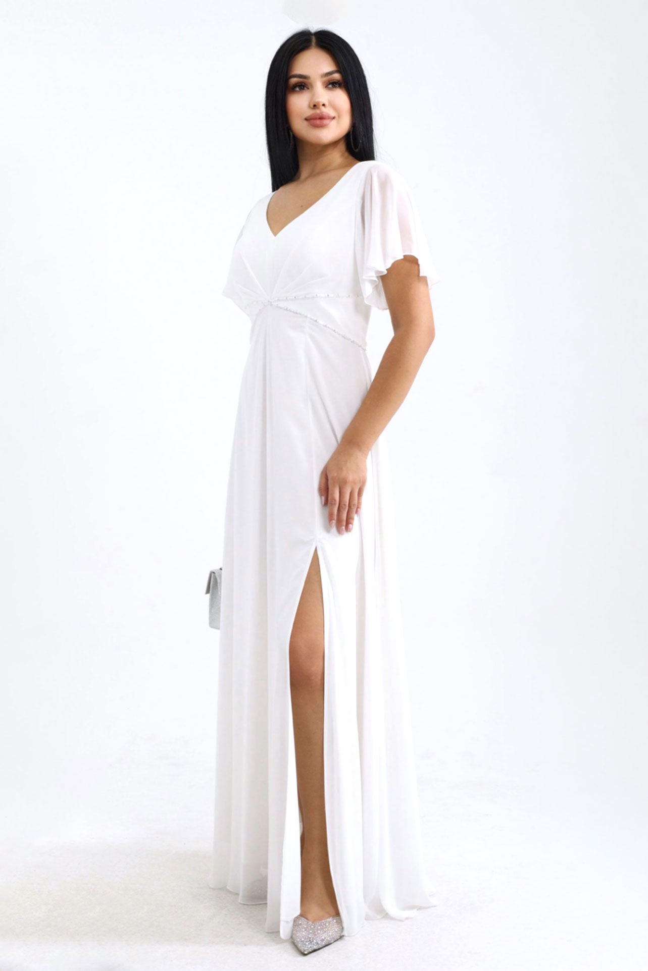 Бяла официална рокля от шифон с камъни „White Crystal“