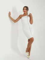 Елегантна бяла рокля с една презрамка и камъни „White Diamond“