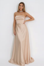 Сатенена дълга рокля цвят шампанско „Champagne Grace“