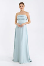 Материя: Тежък луксозен сатен, който пада красиво и създава „скъп“ силует.