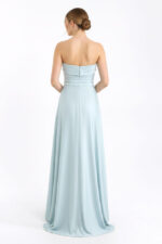 Дизайн: Дълга официална рокля с разкроена пола (А-силует).