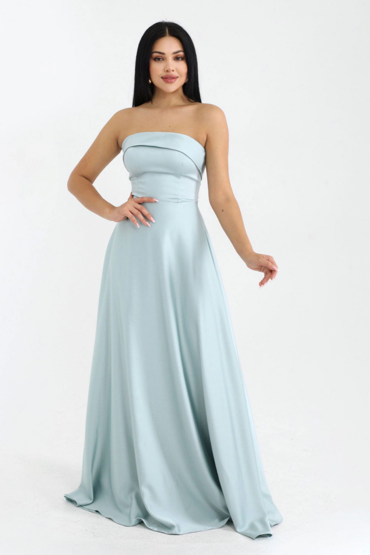 🌿 Свежо вдъхновение. Моделът „Mint Grace“ е глътка свежест. Този изискан нюанс на мента (Тифани) е символ на младост и финес. За разлика от класическото синьо, ментовото носи загадъчен зеленикав подтон, който стои уникално на снимки. Сатенът в този цвят изглежда като скъпоценен камък аквамарин.