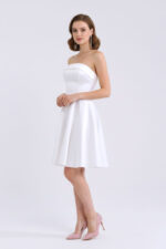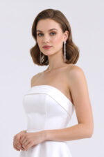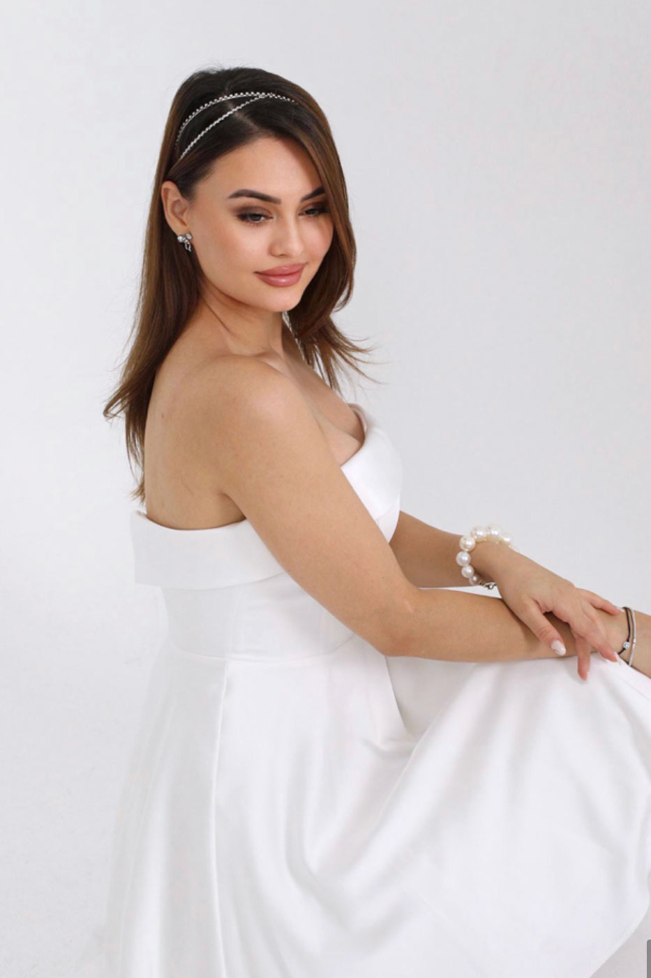 🕊️ Безупречен летен шик. Моделът „White Muse“ е еманация на свежестта и лукса. Белият сатен подчертава перфектно слънчевия загар и ви кара да сияете. Тази рокля е създадена за ексклузивни „White Party“ събития или изискани вечери край морето. Изчистеният дизайн позволява на вашата естествена красота да бъде на преден план.
