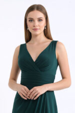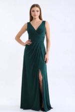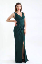Изумрудено зелена дълга рокля с цепка „Emerald Venus“