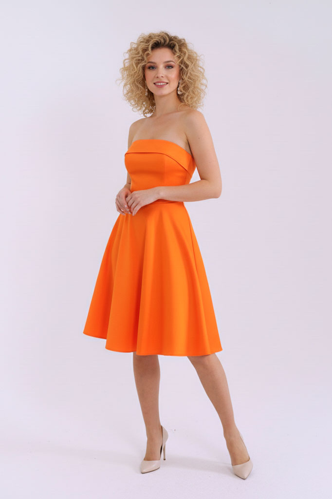 Горна част: V-образно деколте с широки презрамки, които оформят красиво бюста.