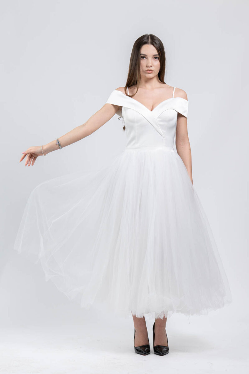 Пола: Вталена, с дълбока цепка отпред, която издължава краката.