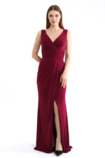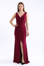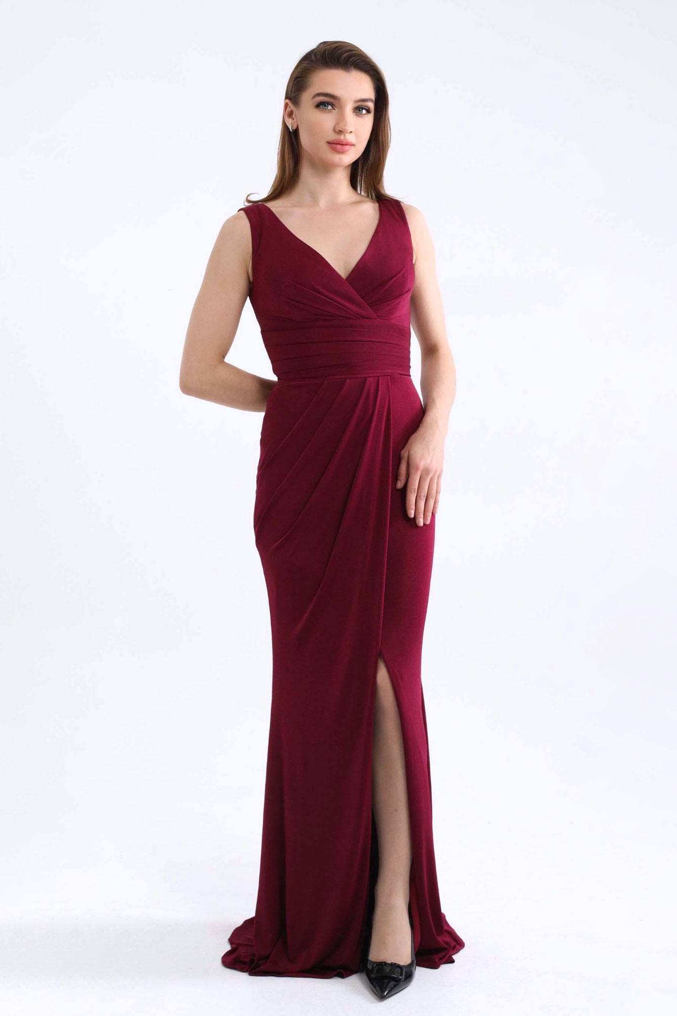 Дълга рокля цвят бордо с V-деколте „Vine Venus“